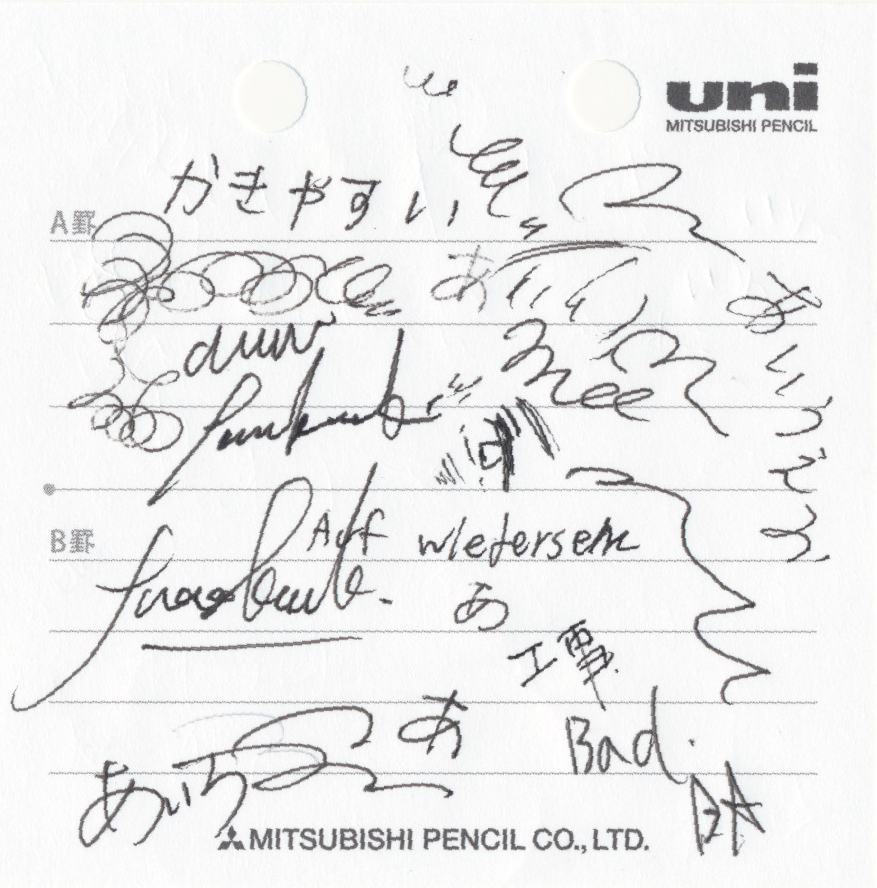 このフォントは文房具店にあるペンの試し書きに書かれていた文字のストロークをトレースした欧文書体です。