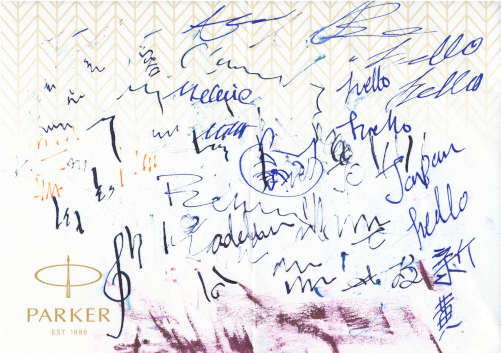 このフォントは文房具店にあるペンの試し書きに書かれていた文字のストロークをトレースした欧文書体です。
